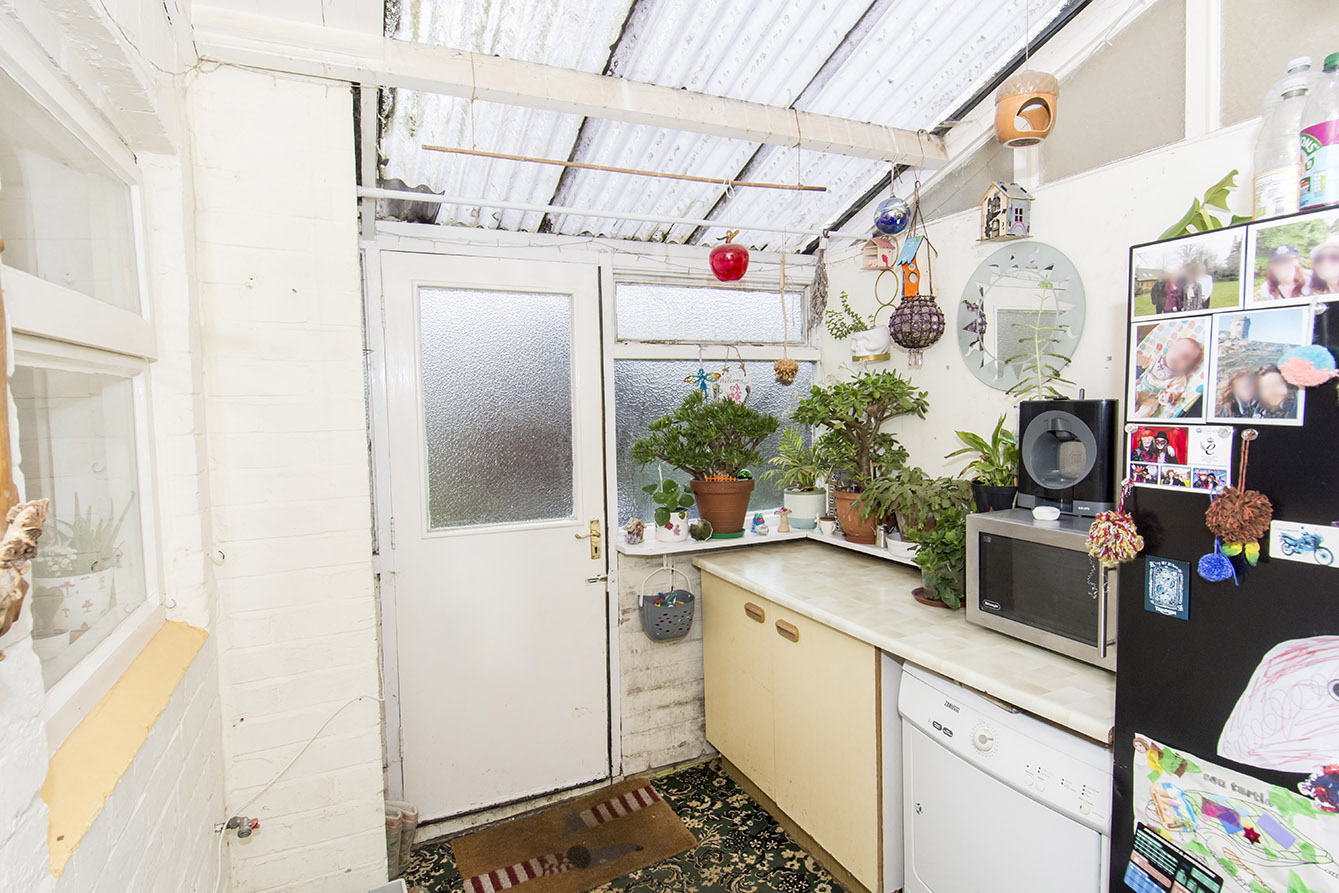 UTILITY AREA 7' 09" x 10' 04" (2.36m x 3.15m) Rear window and door into garden, undercounter space for white goods.