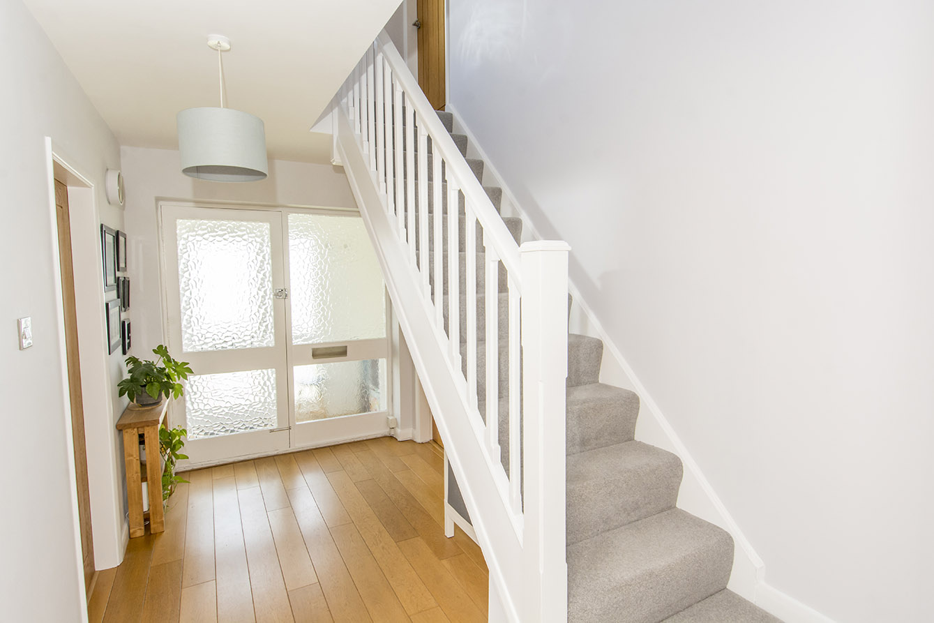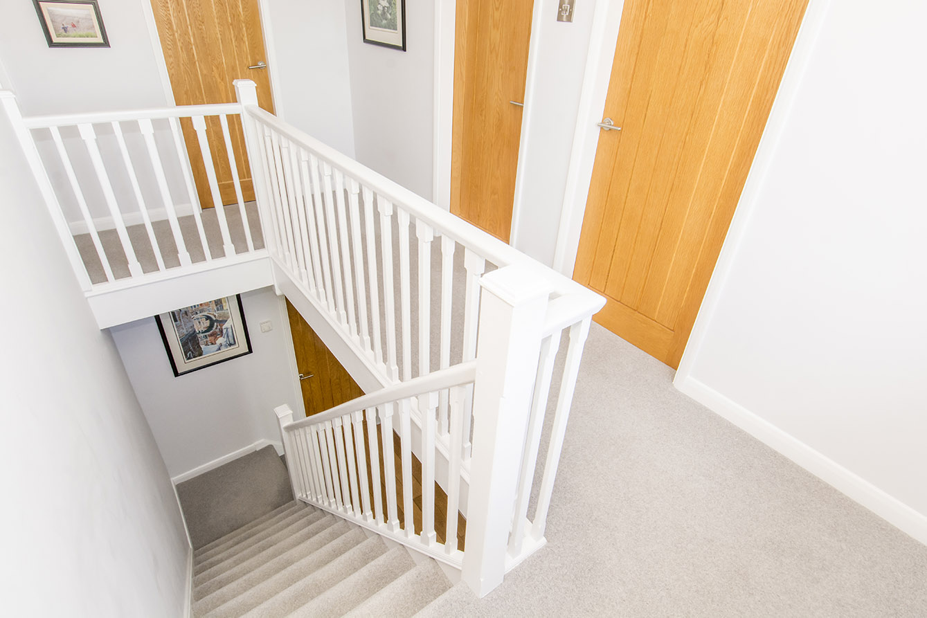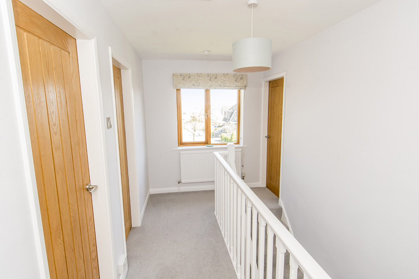 Upstairs, there are four spacious double bedrooms, all featuring attractive stripped pine floorboards. The master bedroom benefits from built-in wardrobes, while a modern family bathroom serves the remaining bedrooms.