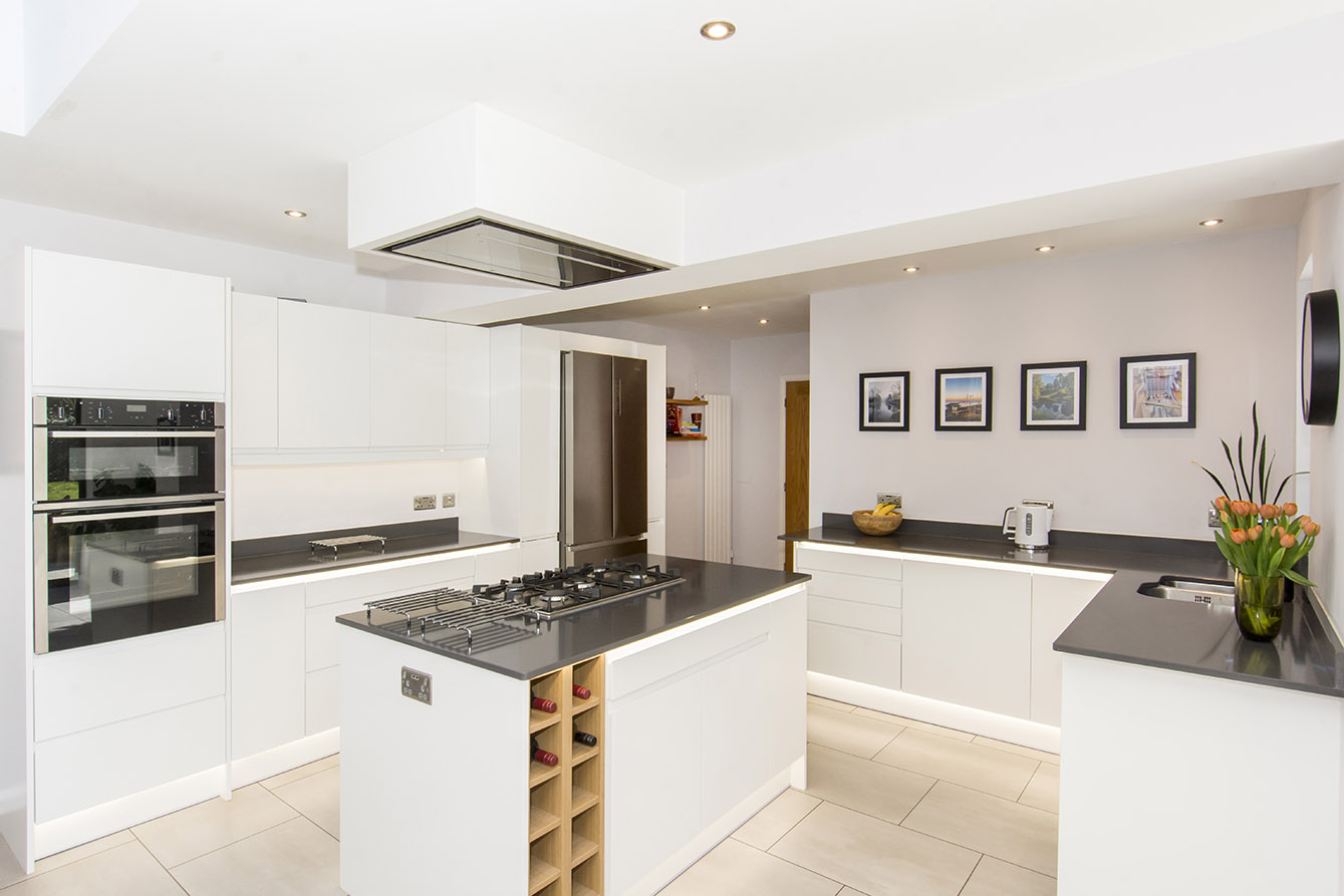KITCHEN/DINING/LIVING 22' 09" x 21' 04" (6.93m x 6.5m) Rear window, side window, rear patio doors with window surround, inset one and a half bowl sink, Neff 5 ring burner gas hob, overhead extractor fan, Neff double oven & grill, integrated dishwasher, space for fridge/freezer, two radiators.