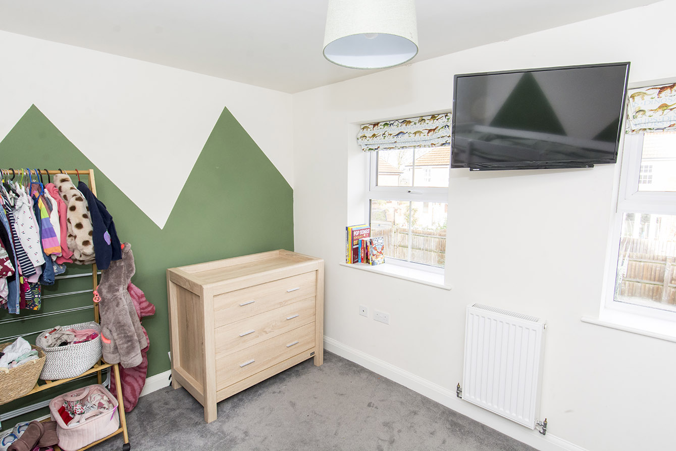 BEDROOM ONE 12' 10" x 9' 07" (3.91m x 2.92m) Two front windows, storage cupboard, radiator.