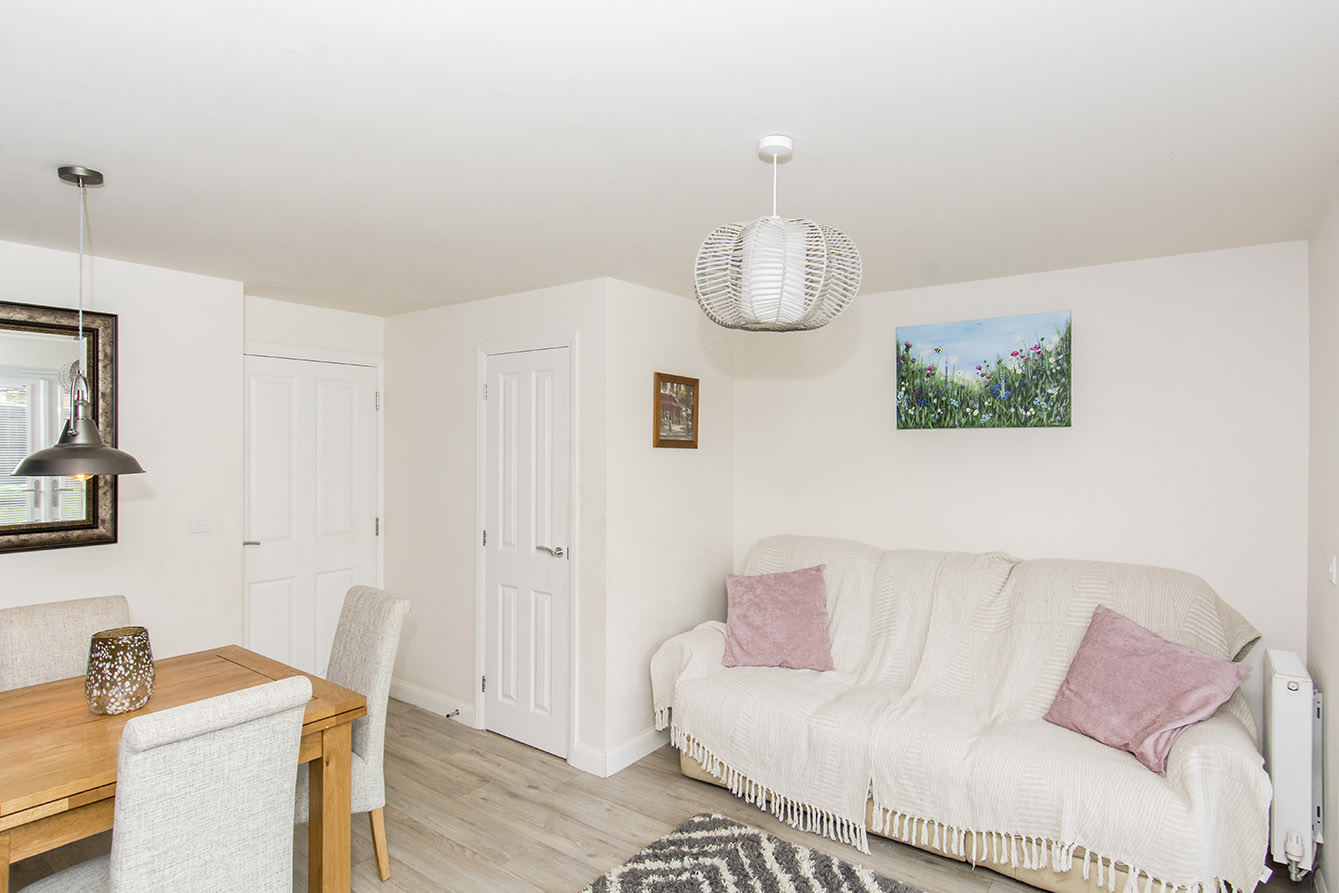 To the rear of the property is a spacious lounge/diner, featuring a useful storage cupboard and French patio doors that open directly onto the garden, allowing plenty of natural light. A convenient WC completes the ground floor.