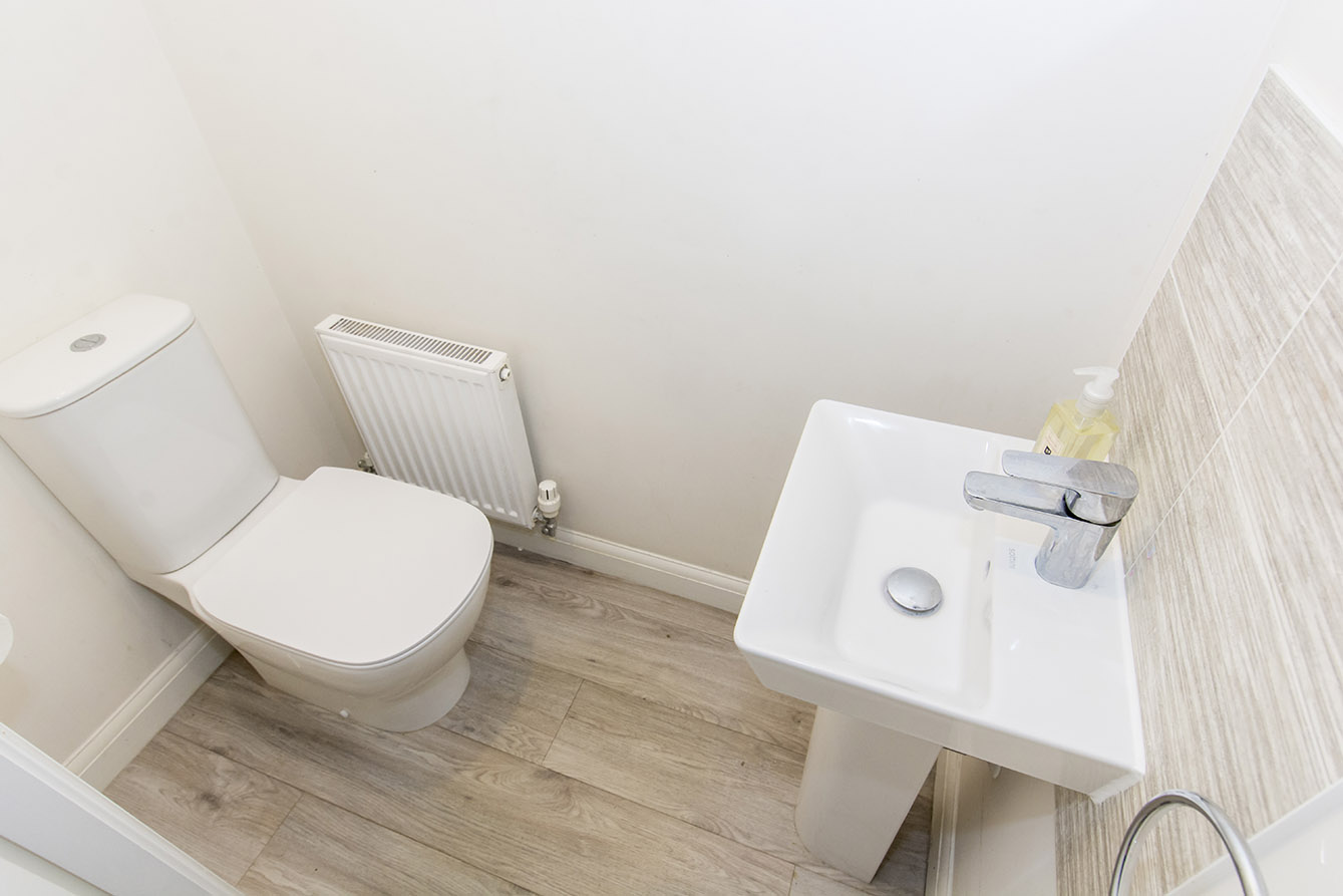 WC 2' 10" x 5' 00" (0.86m x 1.52m) Ceiling extractor fan, toilet, sink, radiator.