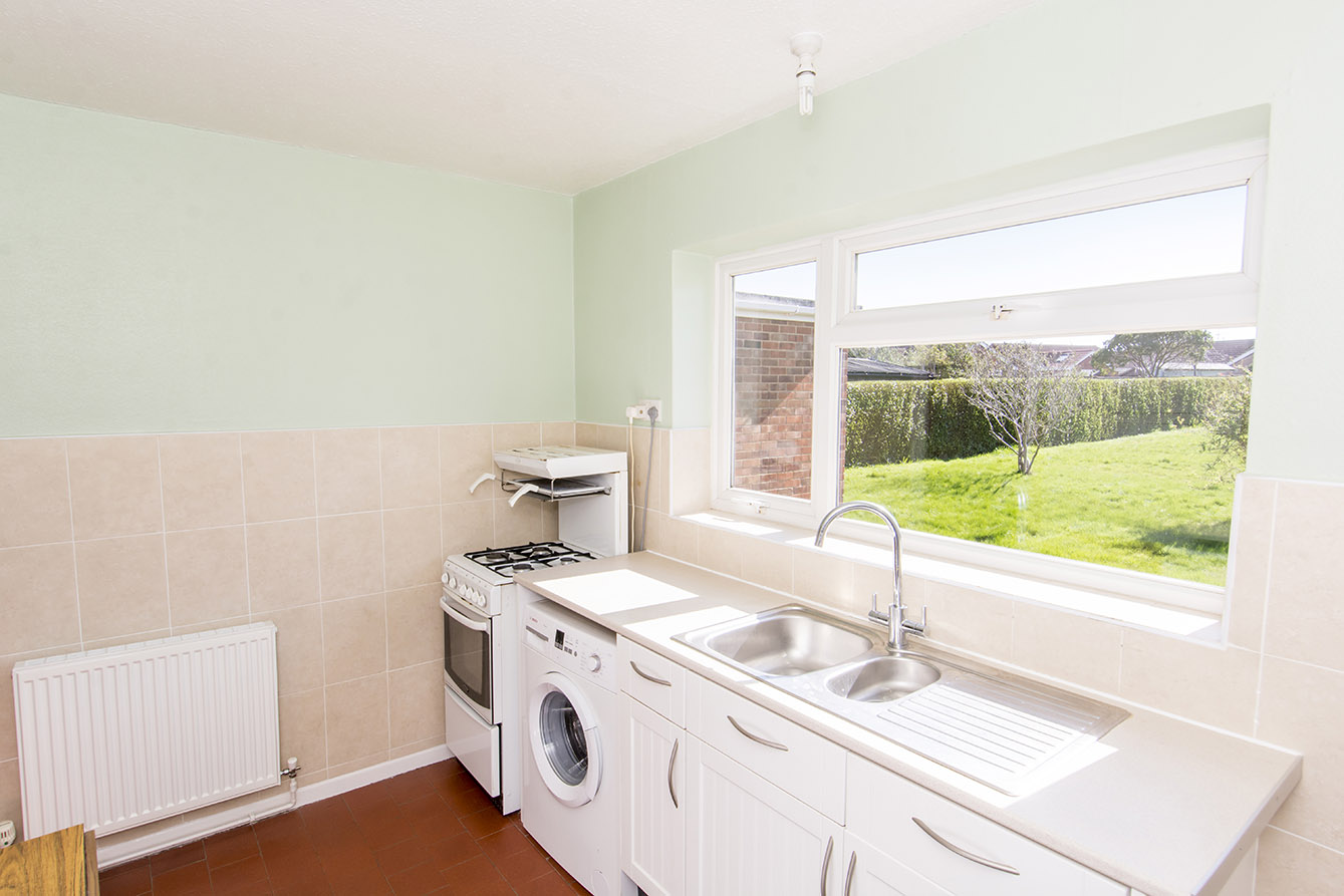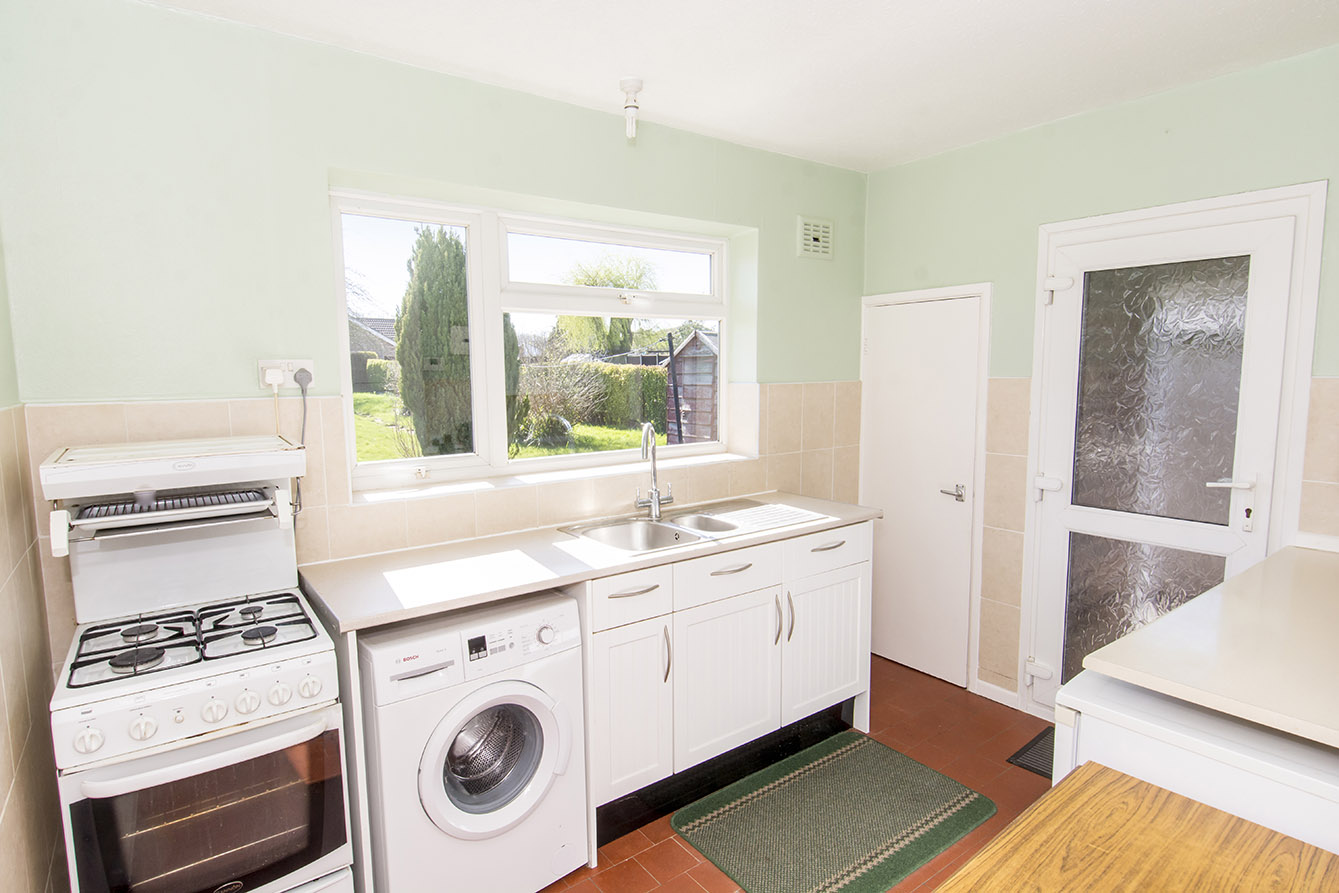 KITCHEN 14' 08" x 10' 09" (4.47m x 3.28m) Rear window, side door into garden, cooker, undercounter space for white goods, stainless steel sink, storage cupboard, airing cupboard housing the hot water tank.