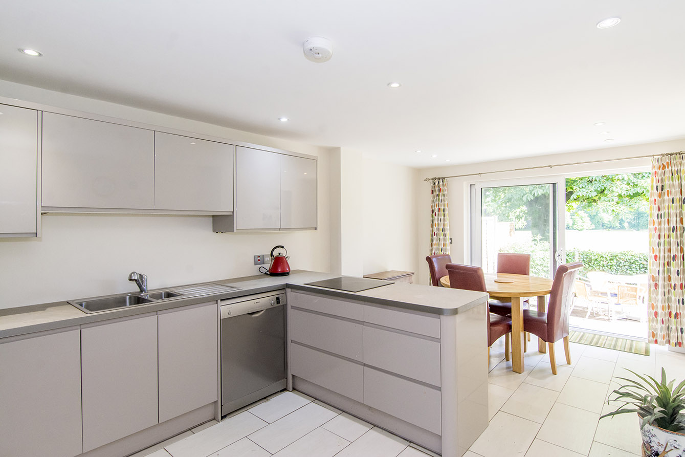 KITCHEN/DINER 11' 05" x 19' 01" (3.48m x 5.82m) Double oven, sink, electric hob, undercounter space for a dishwasher, sliding patio doors, underfloor heating.