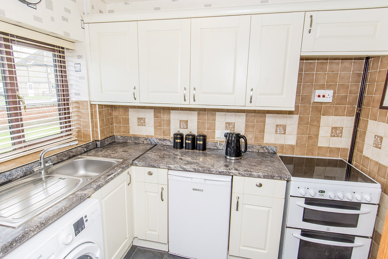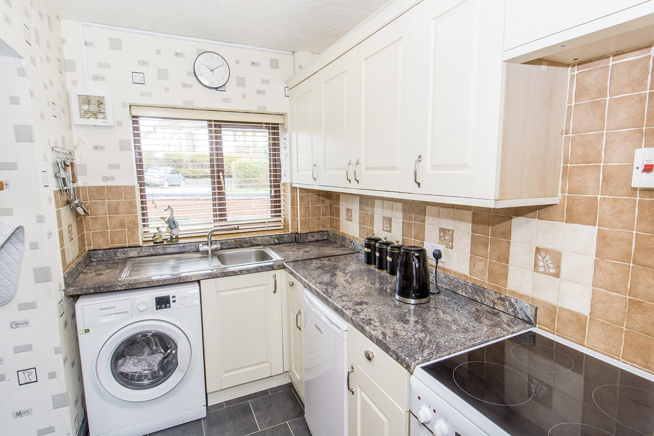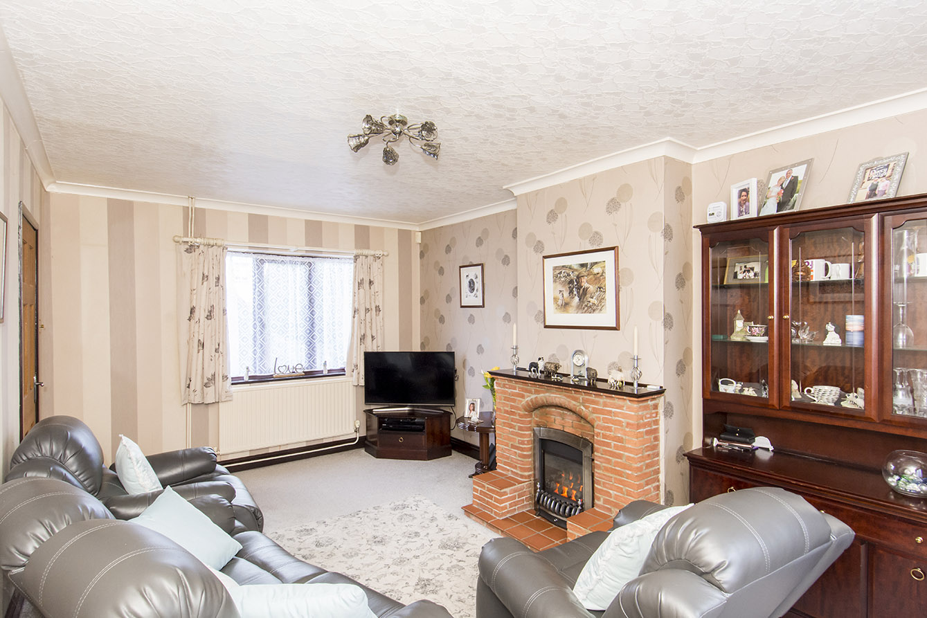 Upon entering, you are welcomed into a central hallway with access to all main living spaces. The kitchen is positioned at the front of the property and is fitted with a range of base and eye-level units with undercounter space for white goods. A convenient side door provides direct access to the garden.