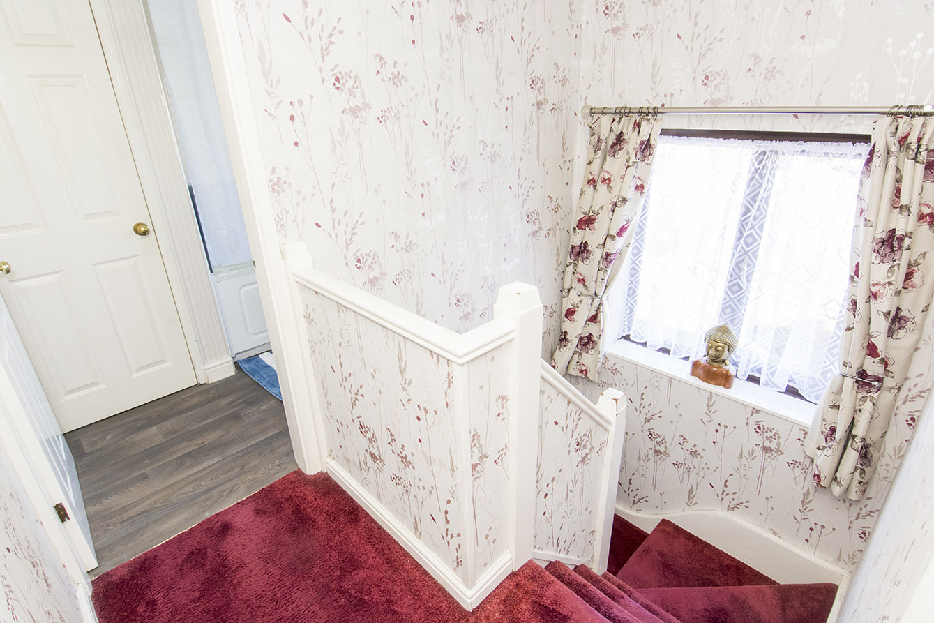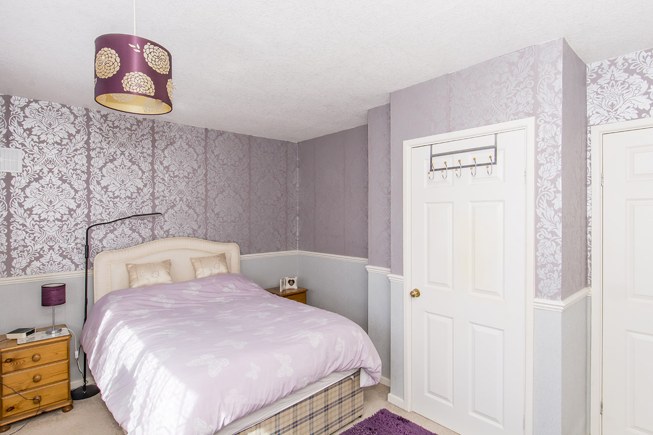 Upstairs, the property comprises three well-proportioned double bedrooms and a family bathroom. Bedrooms two and three benefit from built-in storage cupboards, while the master bedroom offers ample space for freestanding furniture.