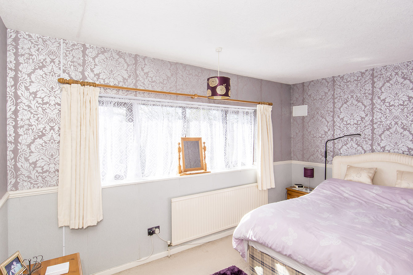 BEDROOM TWO 13' 01" x 9' 11" (3.99m x 3.02m) Rear window, storage cupboard, radiator.