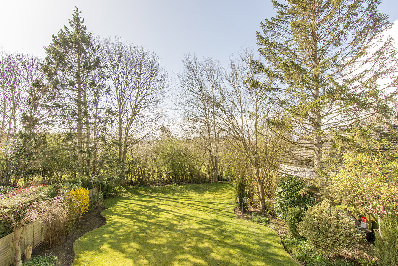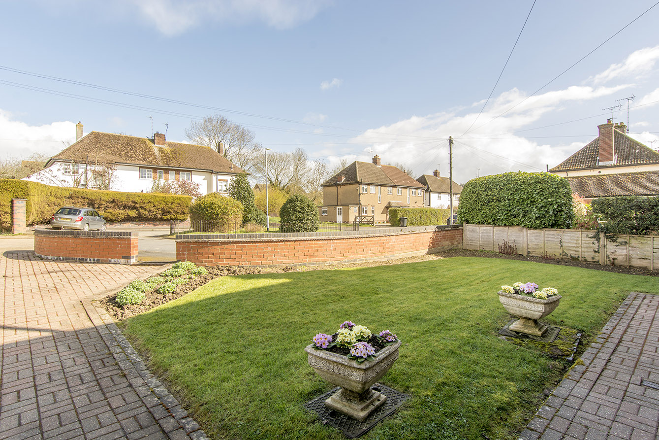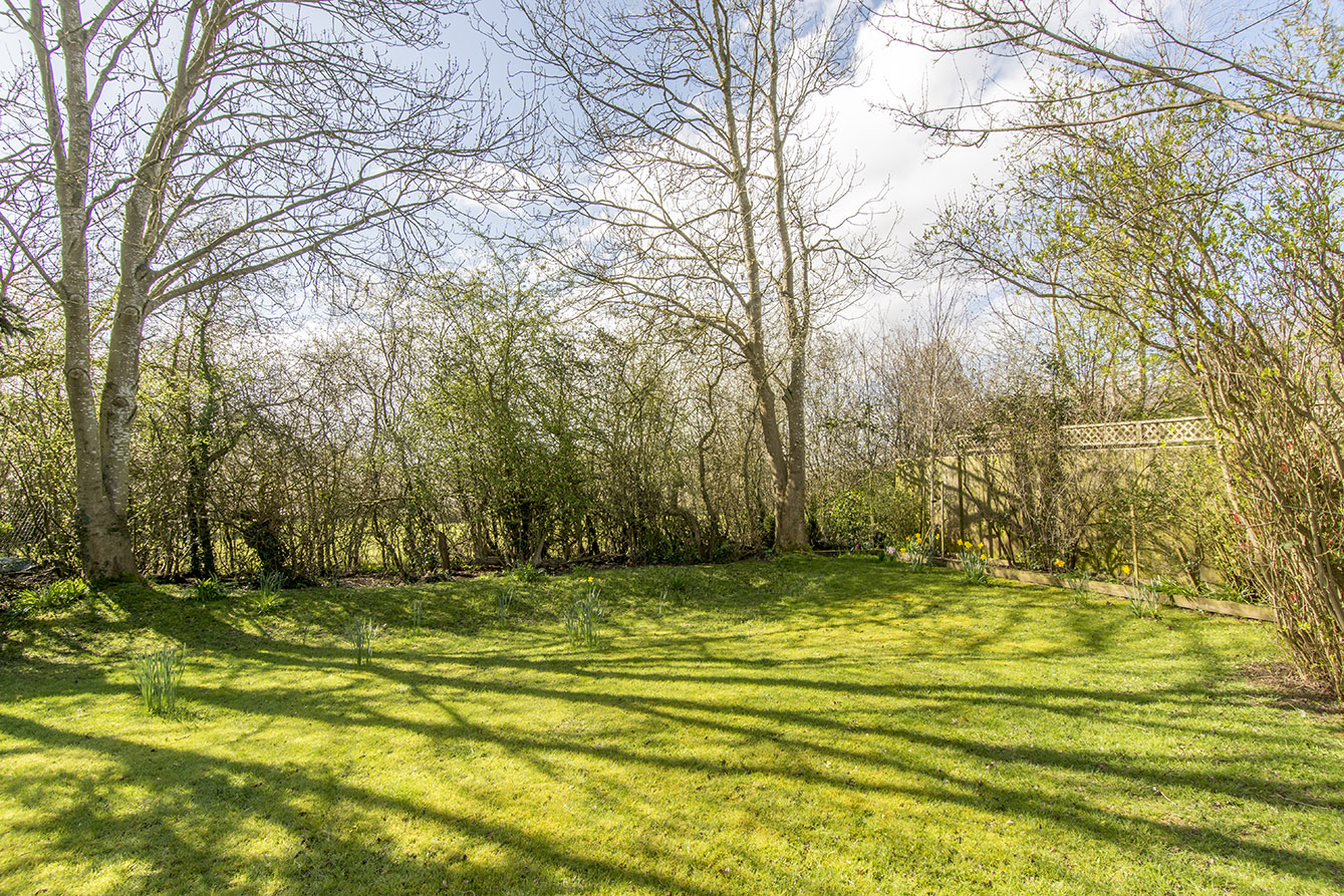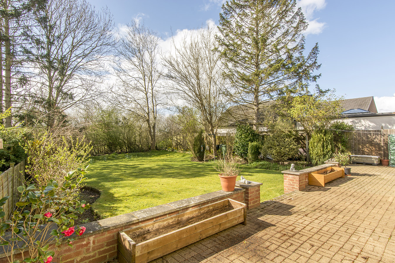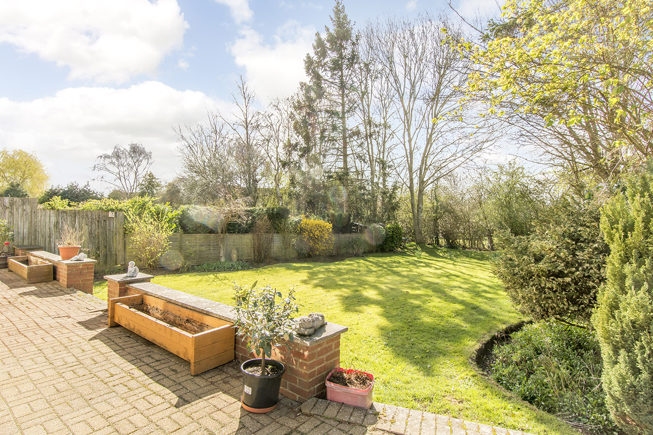 Externally, the front of the property features a neatly maintained lawn bordered by flowerbeds, alongside the driveway and detached garage. The rear garden is a standout feature, enjoying a sunny south-facing aspect. A block-paved patio spans the width of the property and wraps around to the side, providing an ideal space for outdoor entertaining. Steps lead down to a beautifully maintained lawn, enclosed by mature borders filled with established plants, shrubs, and trees. Backing onto open green space, the garden provides a peaceful environment with added privacy.