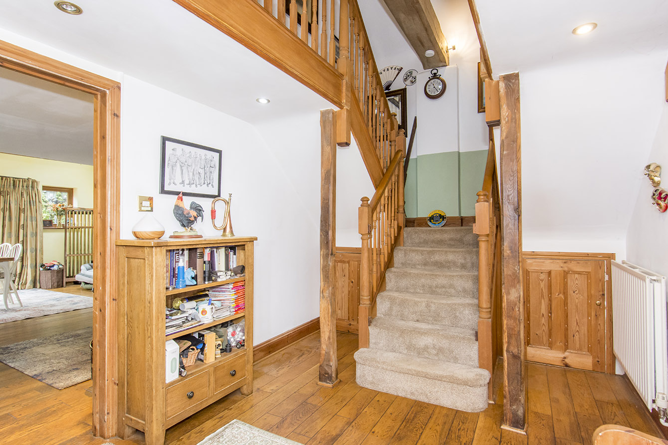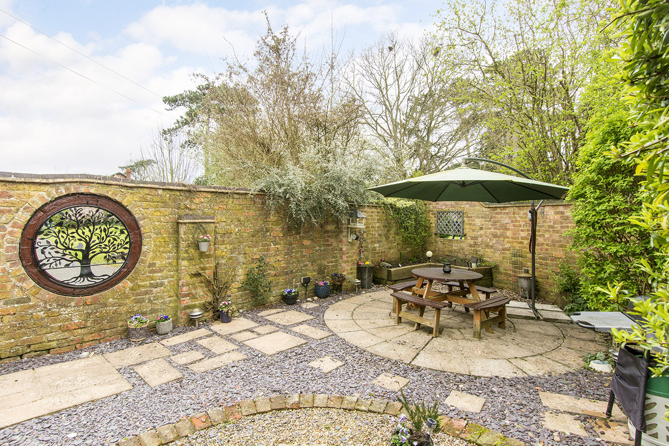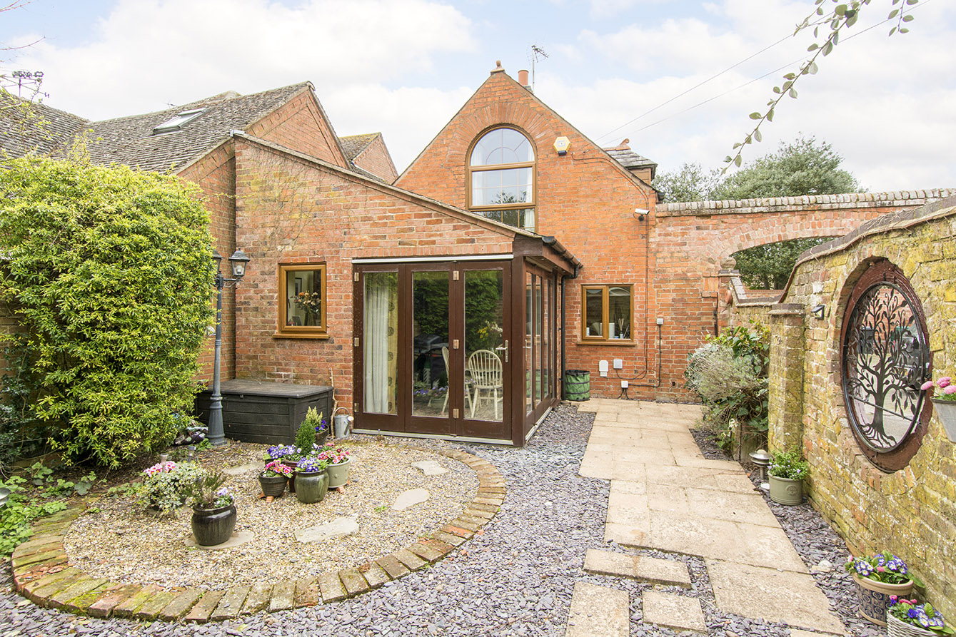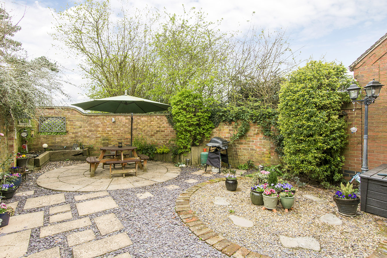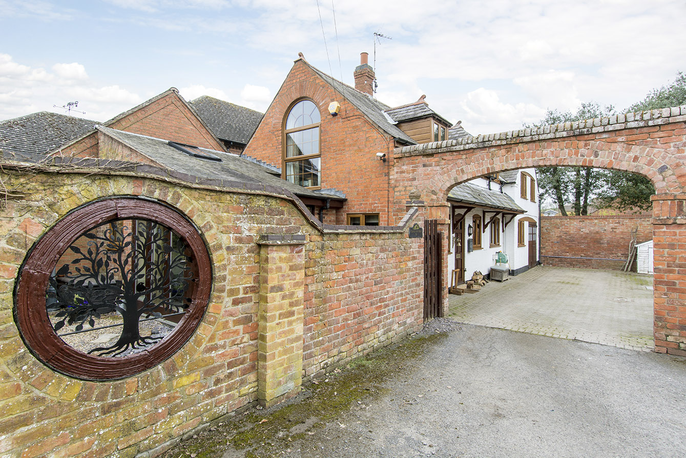 Externally, the property continues to impress. There is ample off-road parking for multiple vehicles alongside access to the single garage. The charming courtyard garden is enclosed by a characterful brick wall with circular inset openings looking out over the grass paddock. The paddock itself is predominantly laid to lawn and is beautifully enhanced by a variety of mature trees, shrubs, and planting, offering a peaceful and scenic outdoor setting.