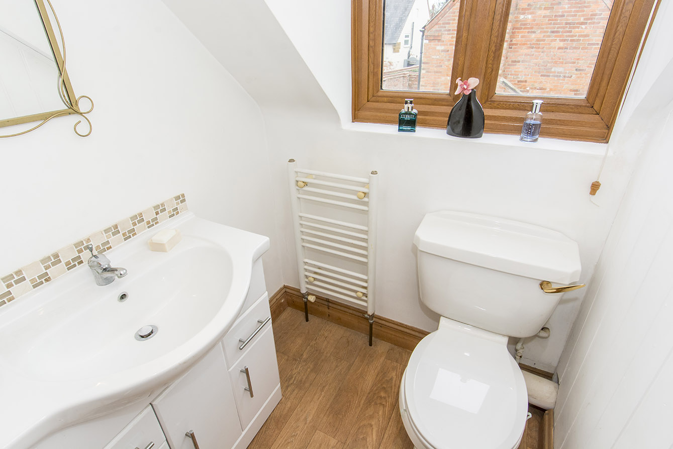 ENSUITE 4' 04" x 4' 06" (1.32m x 1.37m) Front opaque window, toilet, sink unit with storage, heated towel rail.