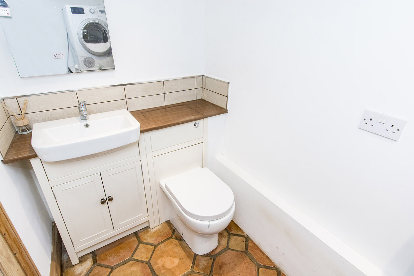 UTILTY/WC 9' 01" x 4' 08" (2.77m x 1.42m) Space for white goods, sink unit with storage and toilet.