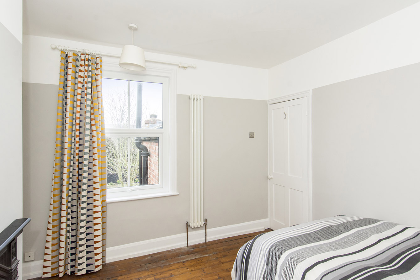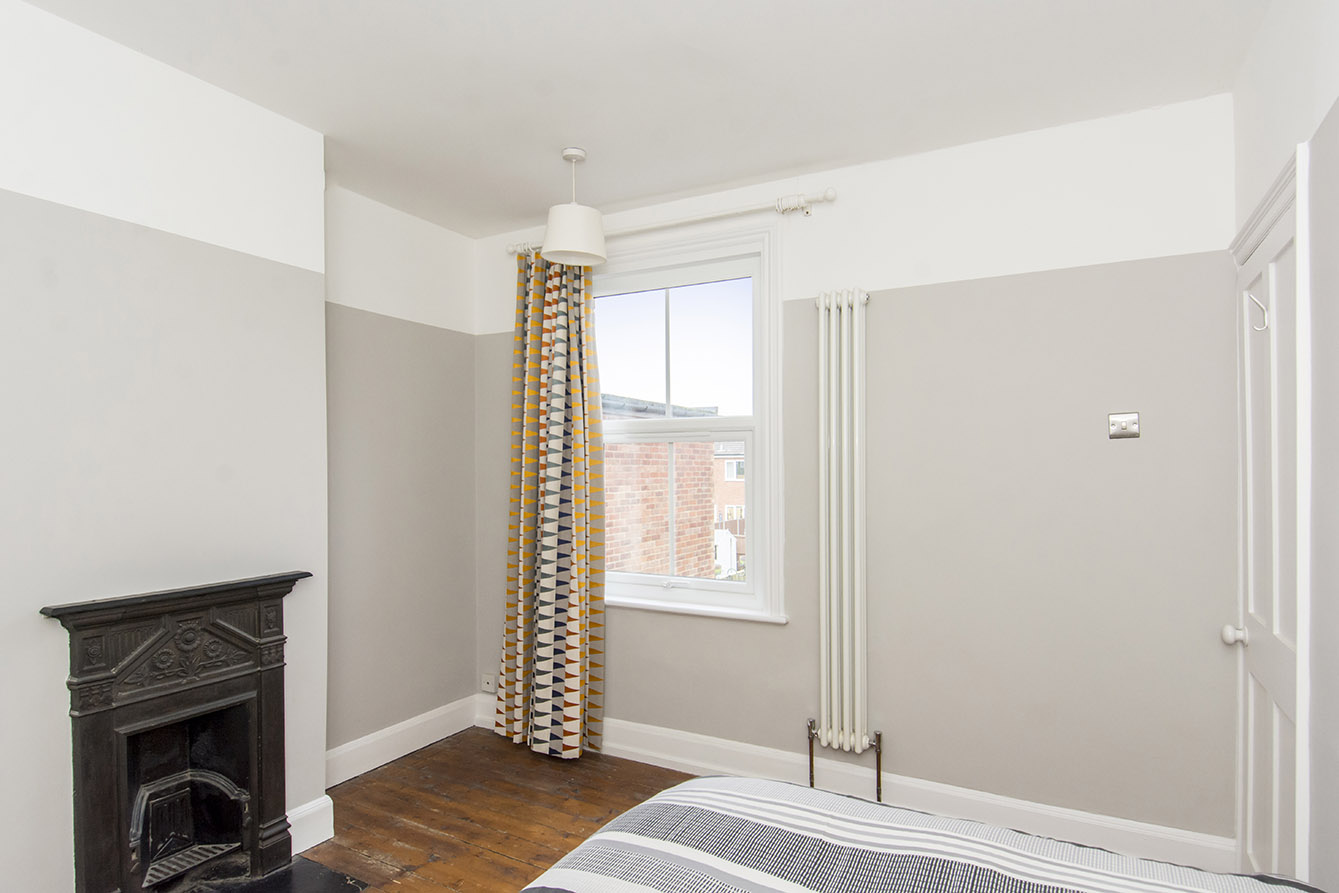 BEDROOM TWO 10' 05" x 10' 11" (3.18m x 3.33m) Rear window, decorative fireplace, radiator.