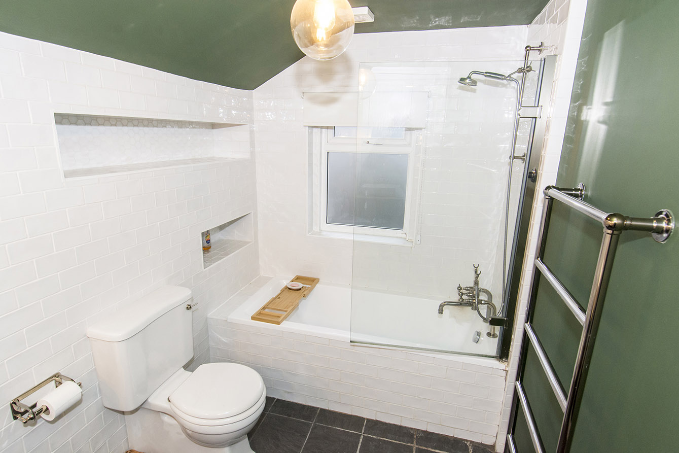 BATHROOM 6' 02" x 9' 03" (1.88m x 2.82m) Rear opaque window, toilet, sink, bath with overhead shower, heated towel rail.
