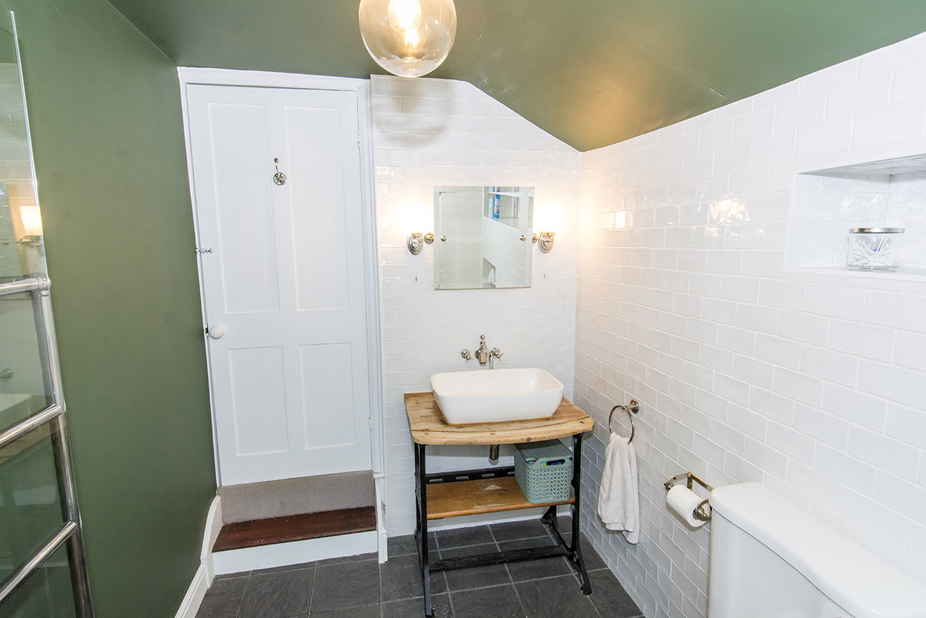 The first floor offers two well-proportioned double bedrooms, with the master bedroom benefiting from built-in storage cupboards and access to the loft room. A family bathroom, fitted with a bath and overhead shower, completes the accommodation.